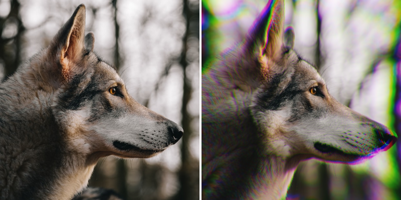 Chromatic aberration is a real world phenomenon in which light rays passing through a lens focus at different points depending on their wavelength. The result is a separation of colours at the edges of an image.