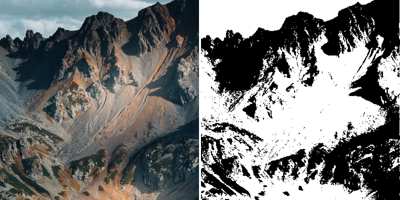 The Threshold Filter converts all pixels lighter than the threshold to white and all pixels darker than the threshold to black. It can be used to create high contrast, black and white results.