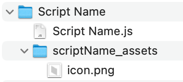 If a script has assets (for example images), these should be placed inside a folder with the suffix _assets. Any directory ending with _assets will be hidden when navigating the Scripts menu.