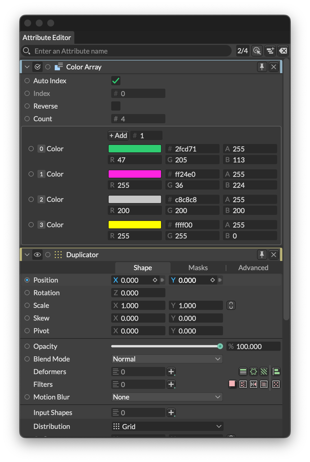 Reset all Attributes - Reset all attributes except the Gradient and Graph widgets to the default values. This will not remove any connections or keyframes.