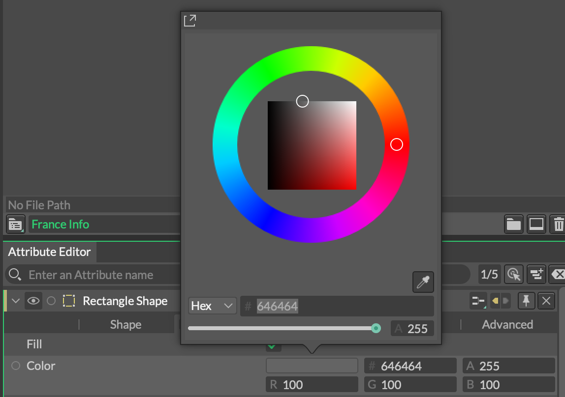 An attribute containing R, G, B, A and hex values. Note - the hex value cannot be animated.