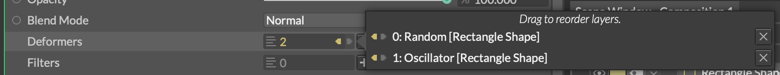 Input Lists are rows that can contain multiple connections. Input connections can be made by dragging a Layer on to the row, making a connection or by clicking the + icon to the right of the Control to add and connect a new Layer. This will bring up a list of compatible Layers that can be connected.