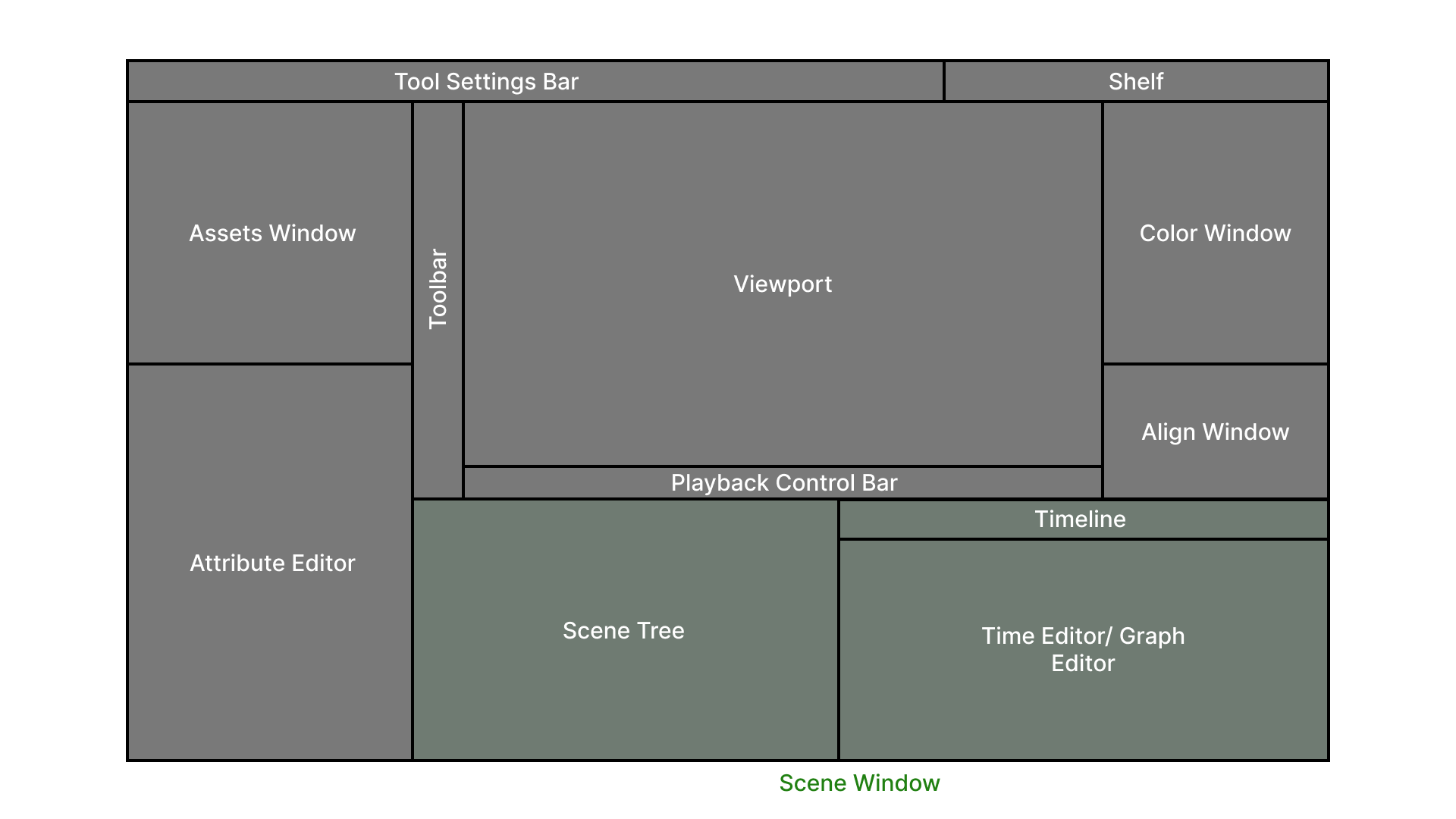 Cavalry's default Workspace consists of various Windows but it's possible to set up and save custom Window layouts for context specific tasks. This can be useful when switching focus between drawing/ rigging/ animating/ etc. in order to only display the UI elements required for each specific task.
