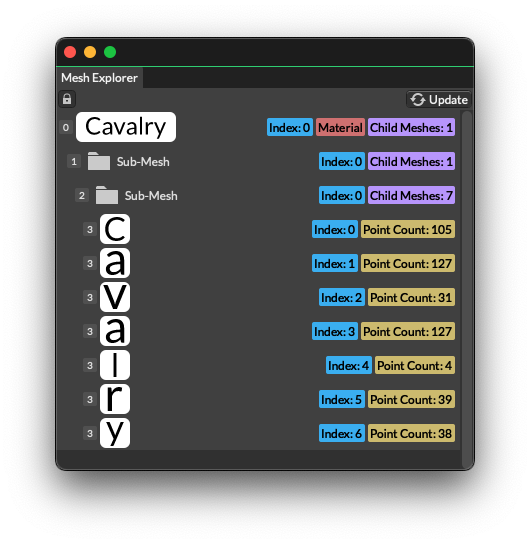 The Mesh Explorer can be used to examine a Shape's internal mesh structure and hierarchy.